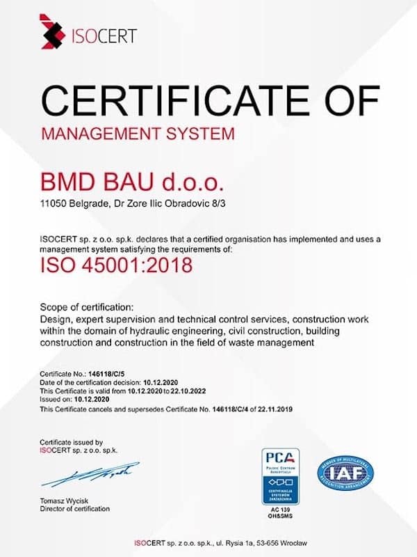 - ISO 45001:2018 – Sistemi stručnog nadzora i tehničke kontrole