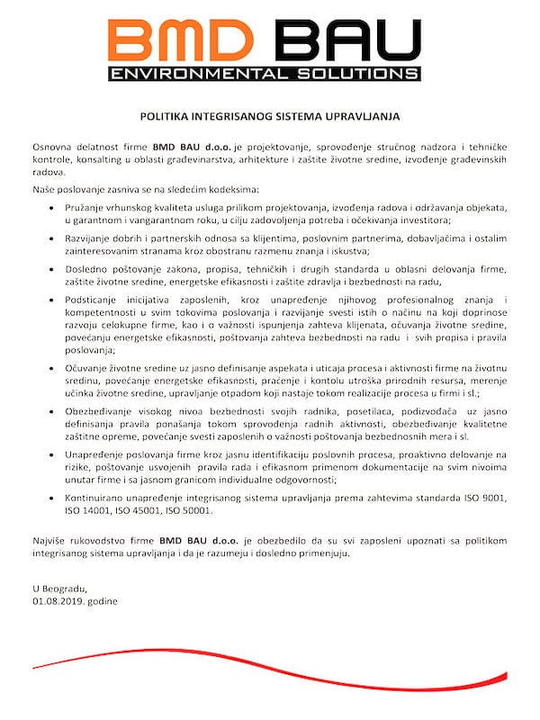 - ISO 14001:2015 – Sistemi upravljanja kvalitetom