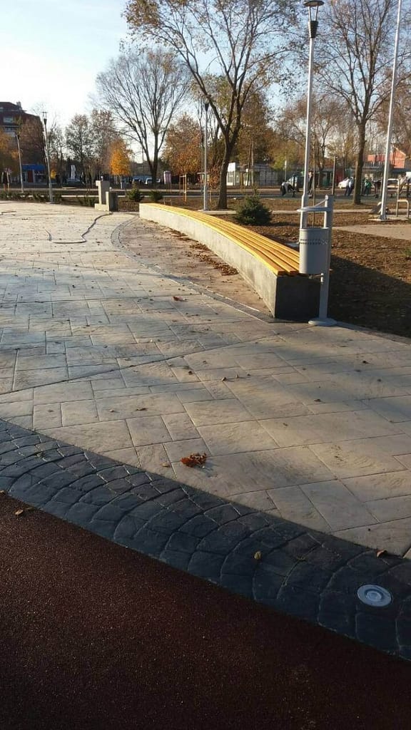 U parku su izvedene šetne staze u štampanom betonu, sa podnom rasvetom, napravljene su klupe, stolovi za šah, galerija na otvorenom, kao i centralni skver sa česmom.