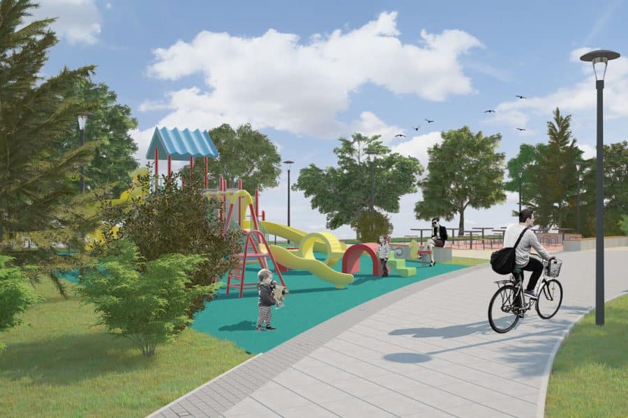 Pored toga, izvedeno je i dečije igralište, fitnes park sa spravama za veđžbanje kao i staza za džogiranje. Zelenilo je obnovljeno i zasađeno novo drveće i žbunje.